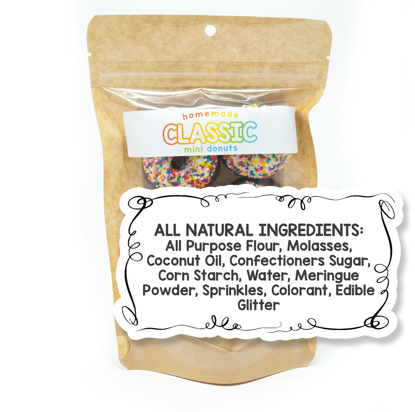 All Purpose Flour, Molasses, Coconut Oil, Confectioners Sugar, Corn Starch, Water, Meringue Powder, Sprinkles, Colorant, Edible Glitter