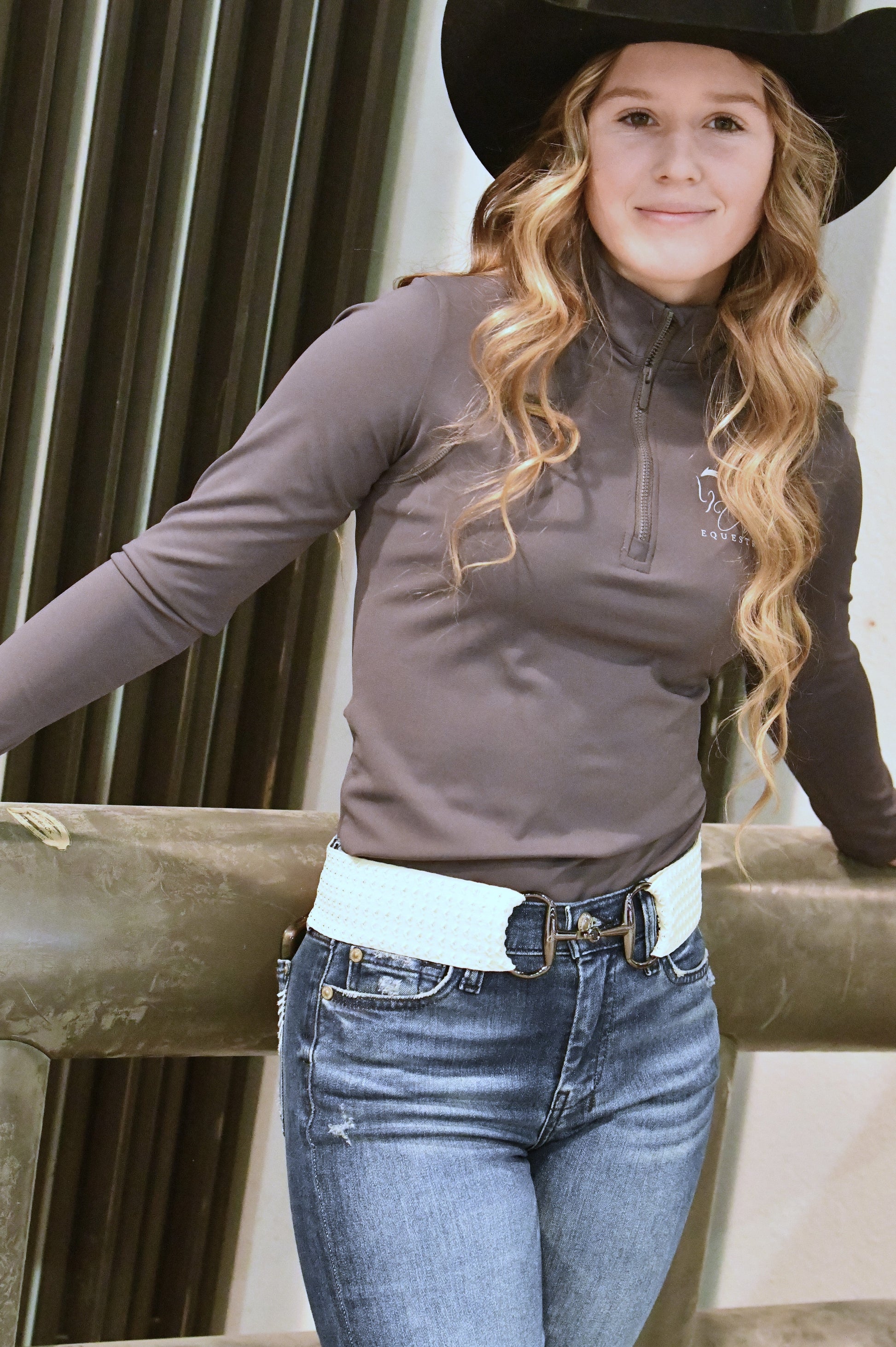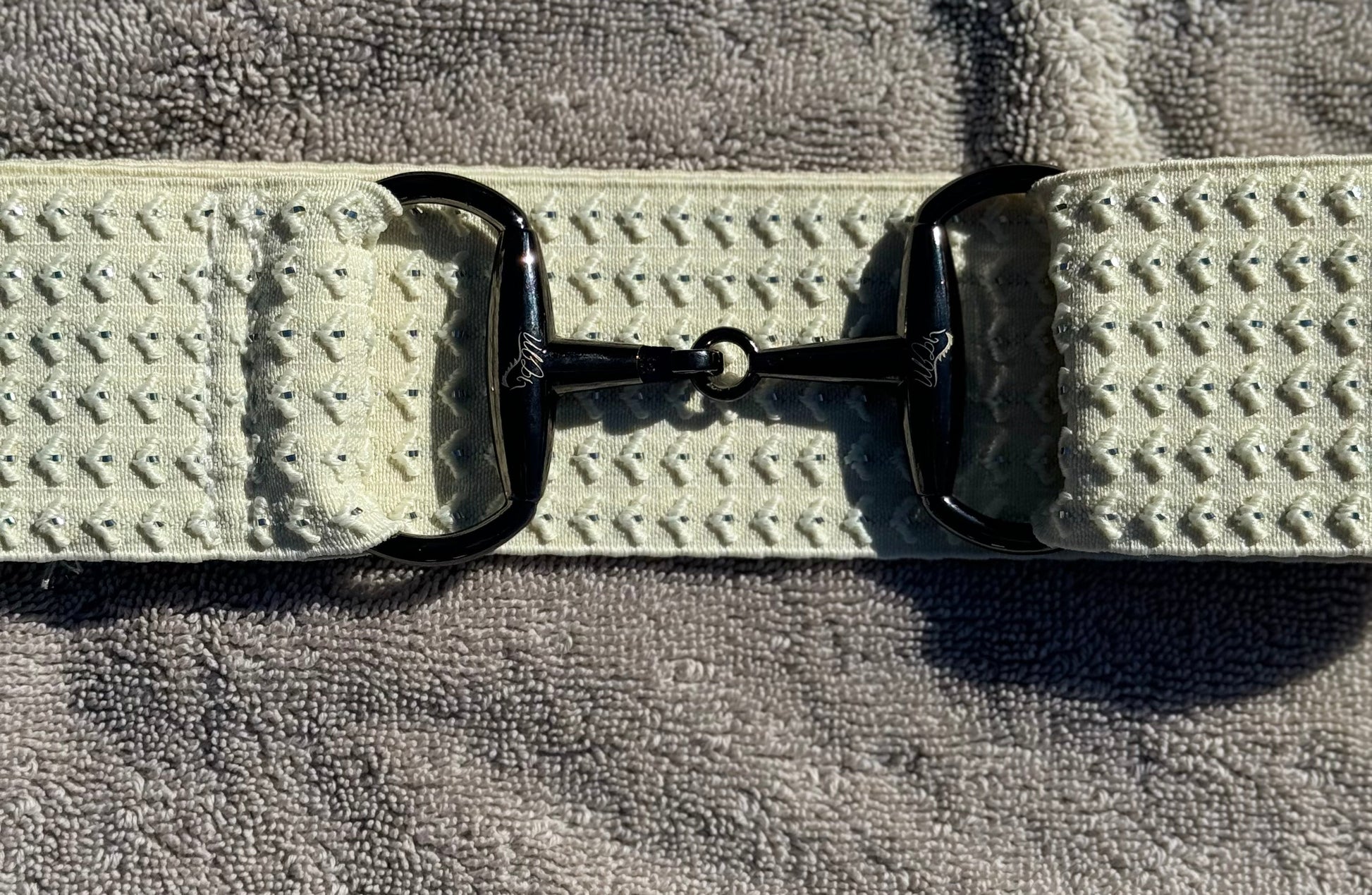 Cream texture with sparkle 2” equestrian black gun metal Snaffel bit belt buckle and