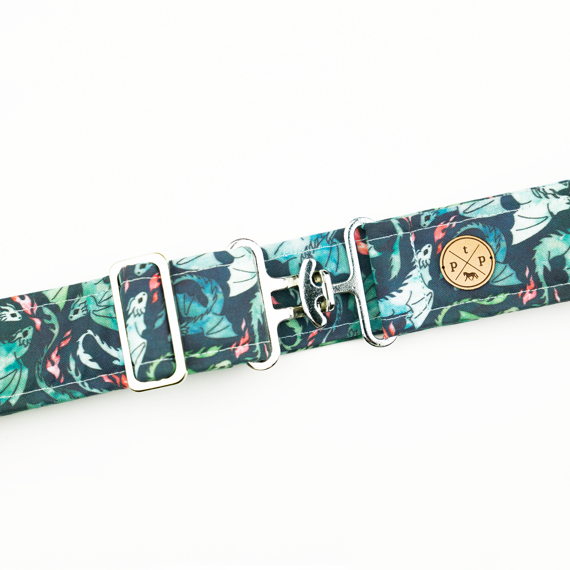 A fashion-forward fabric belt that you can take from the barn to the show ring to even a night out! Made with cotton fabric and cotton webbing, these belts also feature metal buckles and slides.