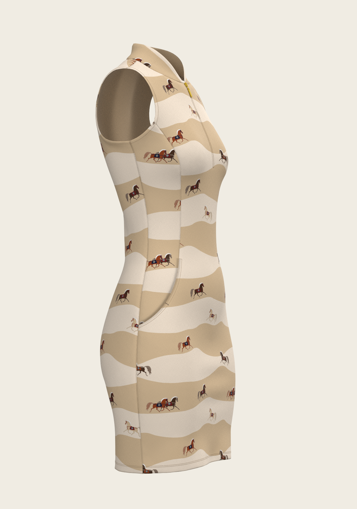 A beautifully fitted sport and leisure dress made from a technical fabric designed to keep you cool and comfortable. A mandarin collar and signature Espoir golden zip puller adds finishing details to this versatile dress. The dress has two front pockets designed to be big enough to easily store a phone or accessories.