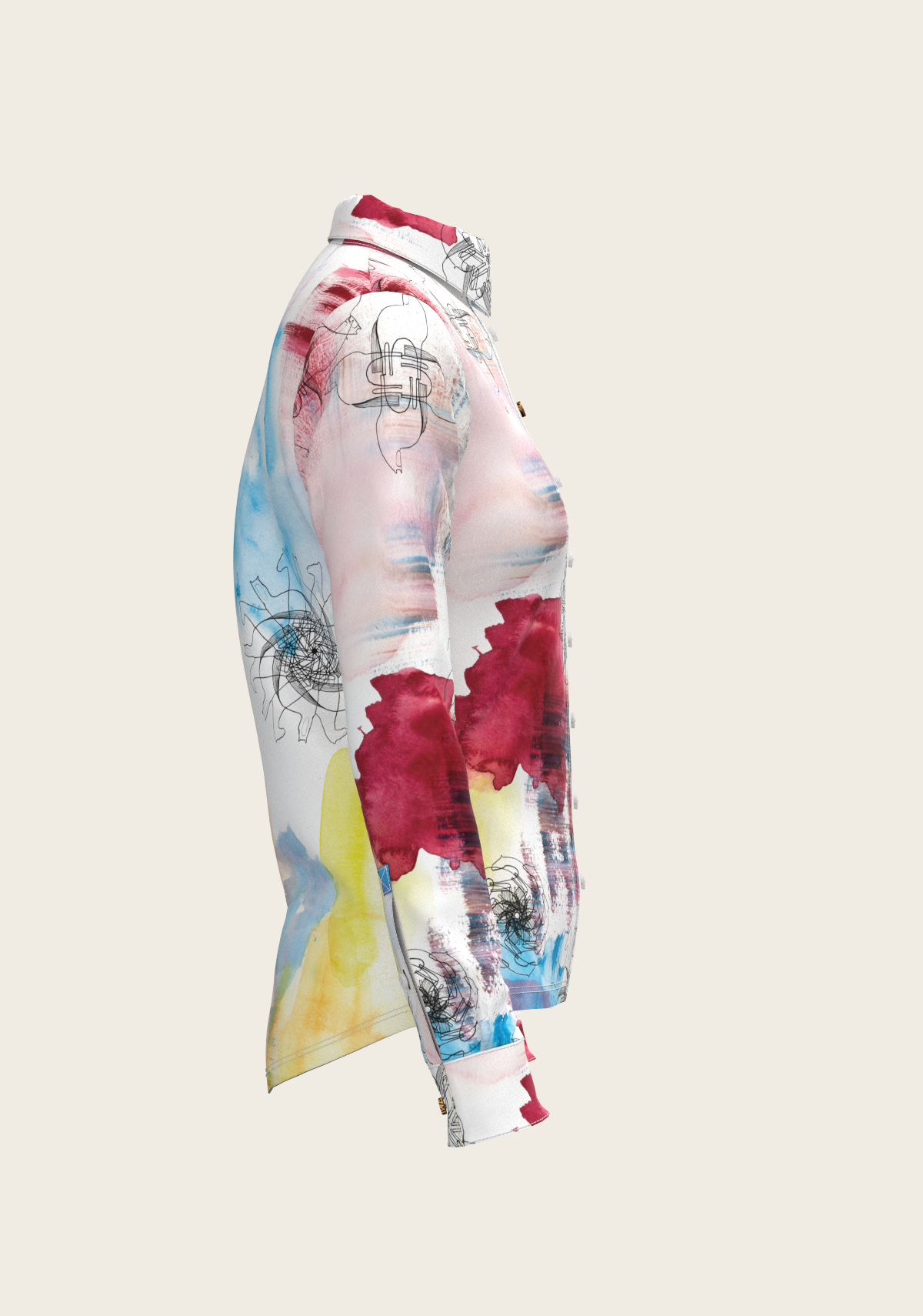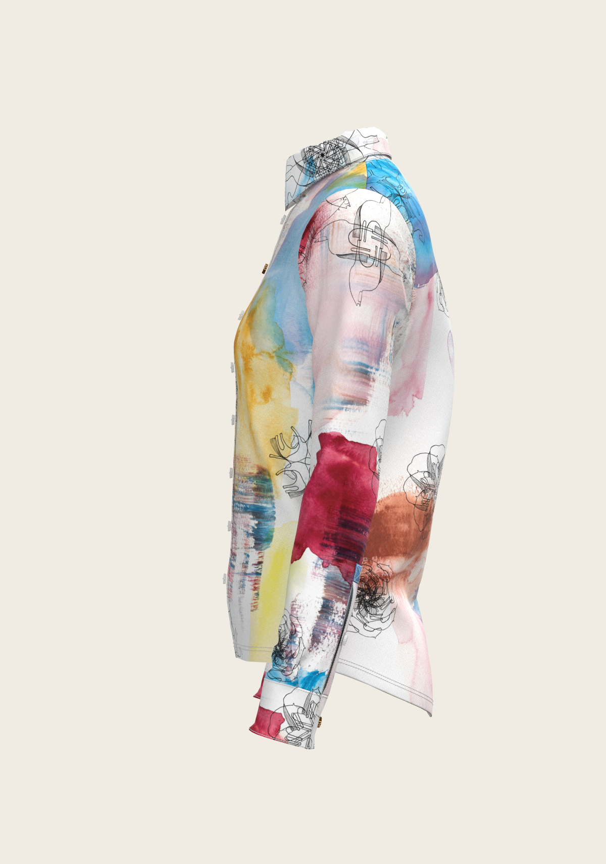 A new collection of Espoir shirts made from a technical, breathable, structured sports fabric that is UV resistant. The everyday button shirts have a center panel of buttons with one small custom gold Espoir button on the front and one on each cuff. The fabric patterns are hand illustrated. A slimming fit for an easy wearing stable to street style shirt.