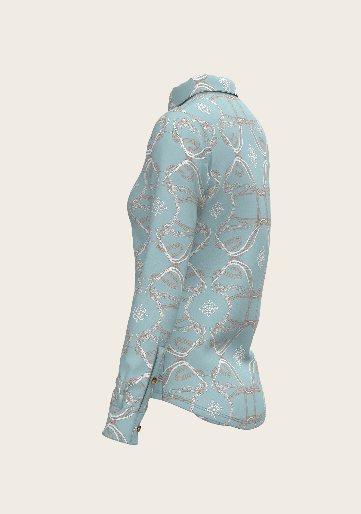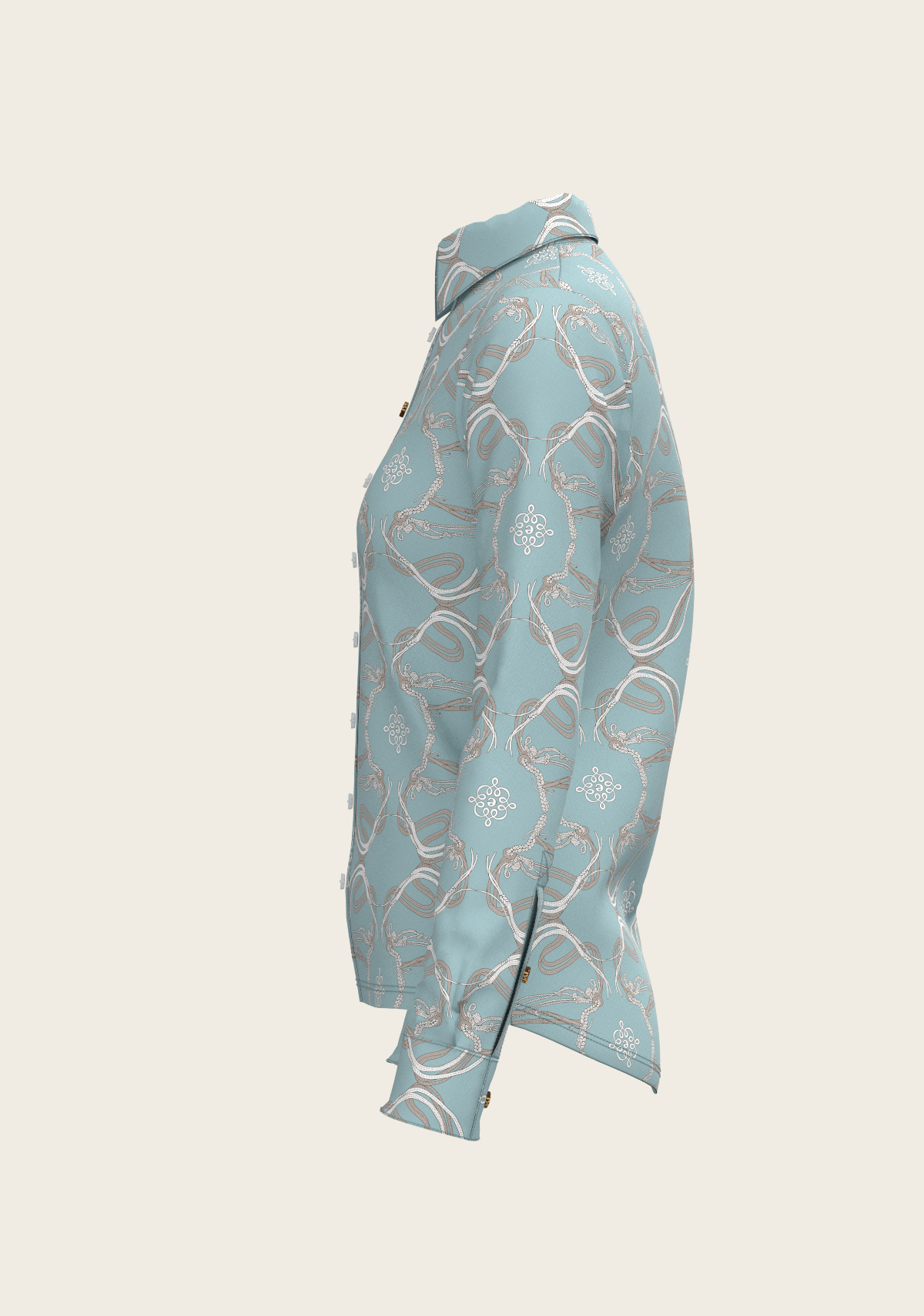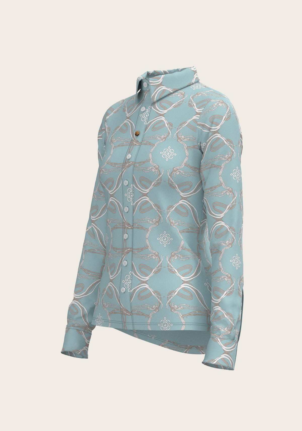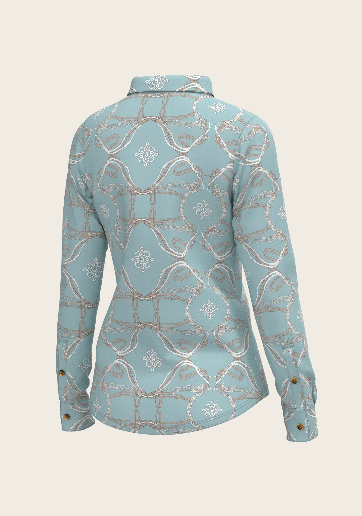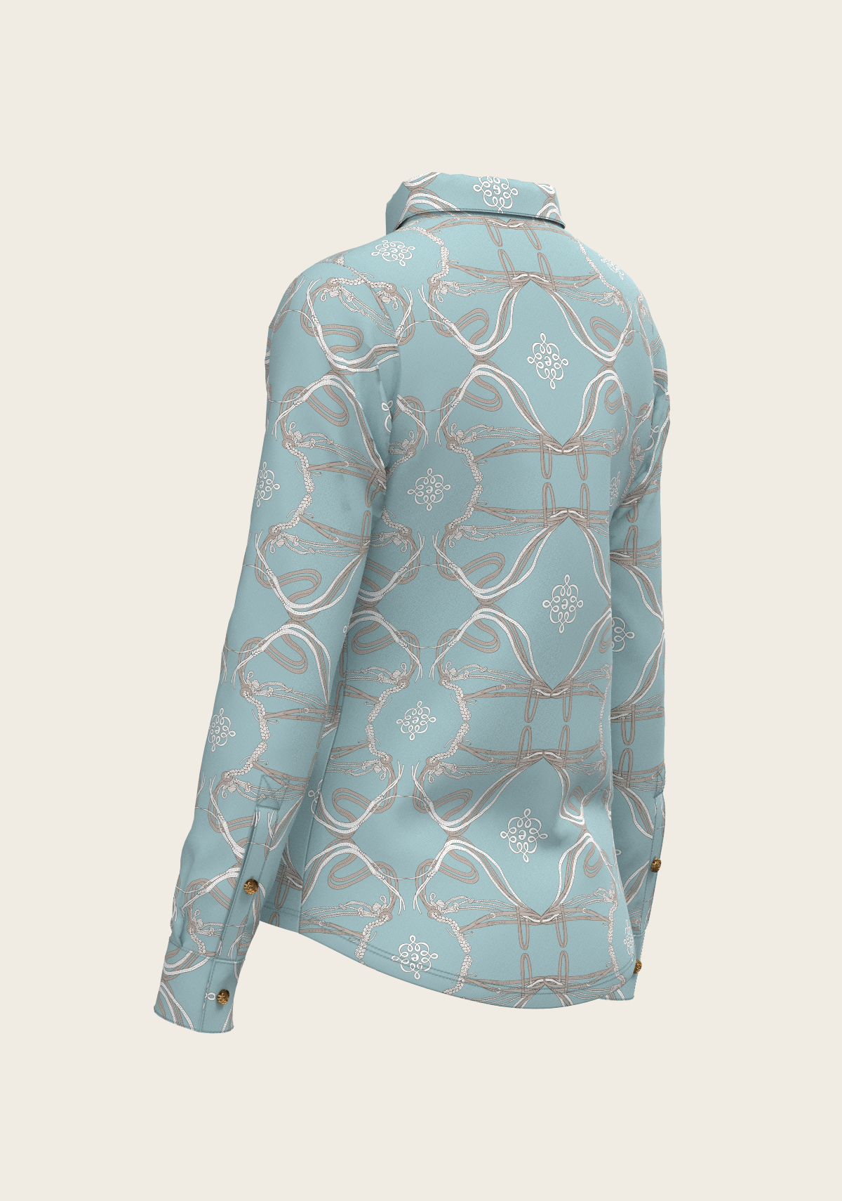 Roped Bridles on Sky Blue Ladies Button Shirt