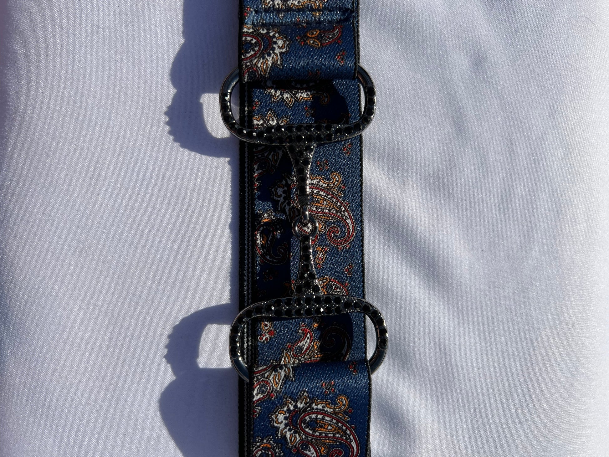Snaffle Bit Riding Belt 1.5” Paisley Adjustable with gun metal bit and black rhinestone crystals