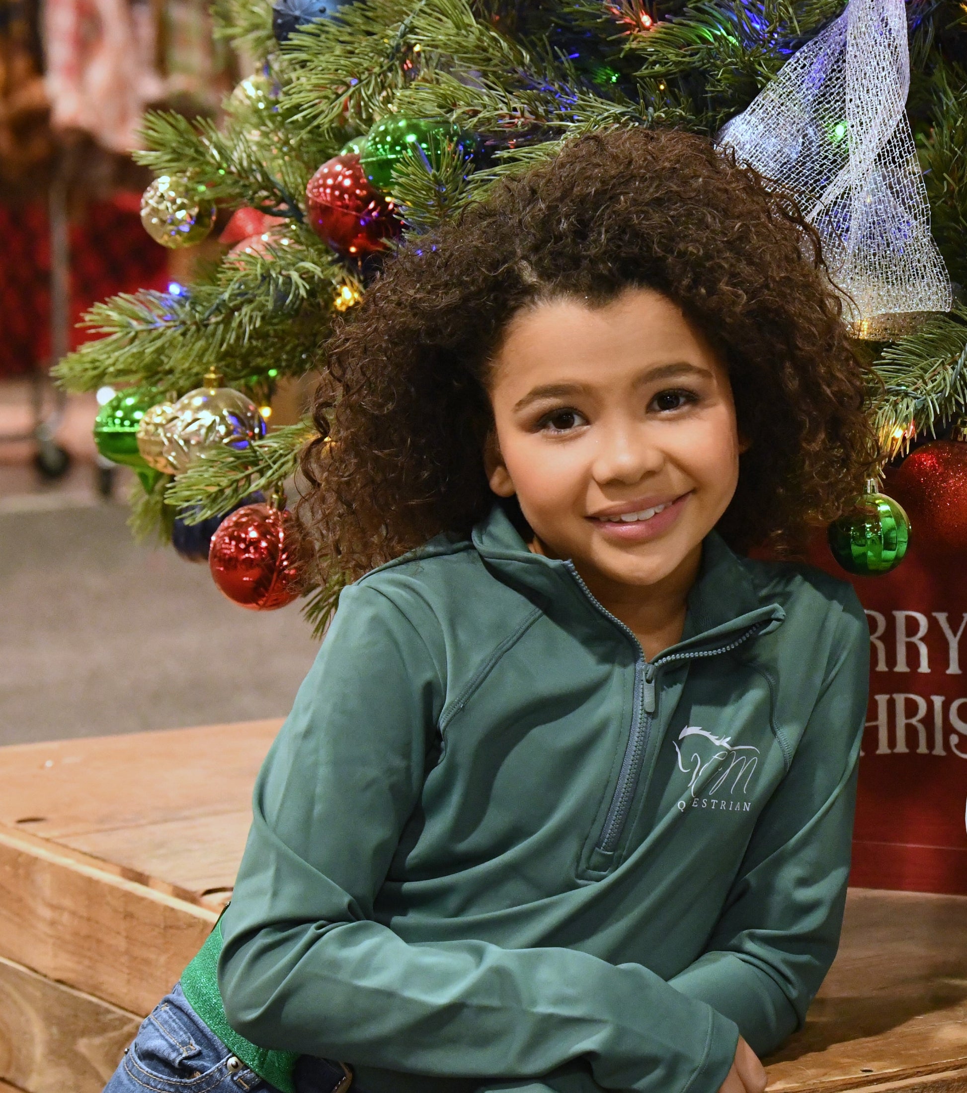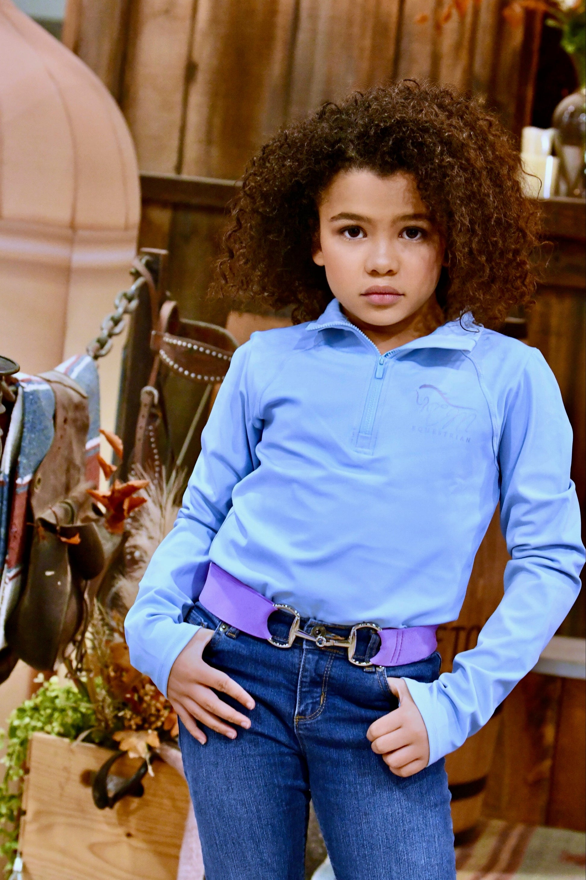 Beautiful, stretchy equestrian, long sleeve shirt with CM equestrian logo. Models are shown wearing a size small.